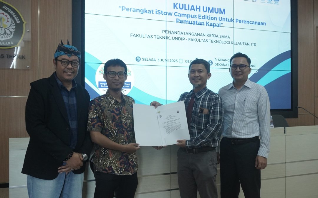 Pada hari Selasa, 3 Juni 2025, Fakultas Teknik Universitas Diponegoro (Undip) menyelenggarakan sebuah kegiatan penting berupa Kuliah Umum dengan tema “Perangkat iStow Campus Edition untuk Perencanaan Pemuatan Kapal”. Acara ini dilaksanakan di Ruang Sidang Senat Lantai 3, Gedung Dekanat Fakultas Teknik Universitas Diponegoro (Undip), dan berlangsung dari pukul 09.00 hingga 12.00 WIB. Kegiatan ini tidak hanya bersifat akademis, tetapi juga menjadi momentum strategis dalam memperkuat kerja sama antar perguruan tinggi di Indonesia.