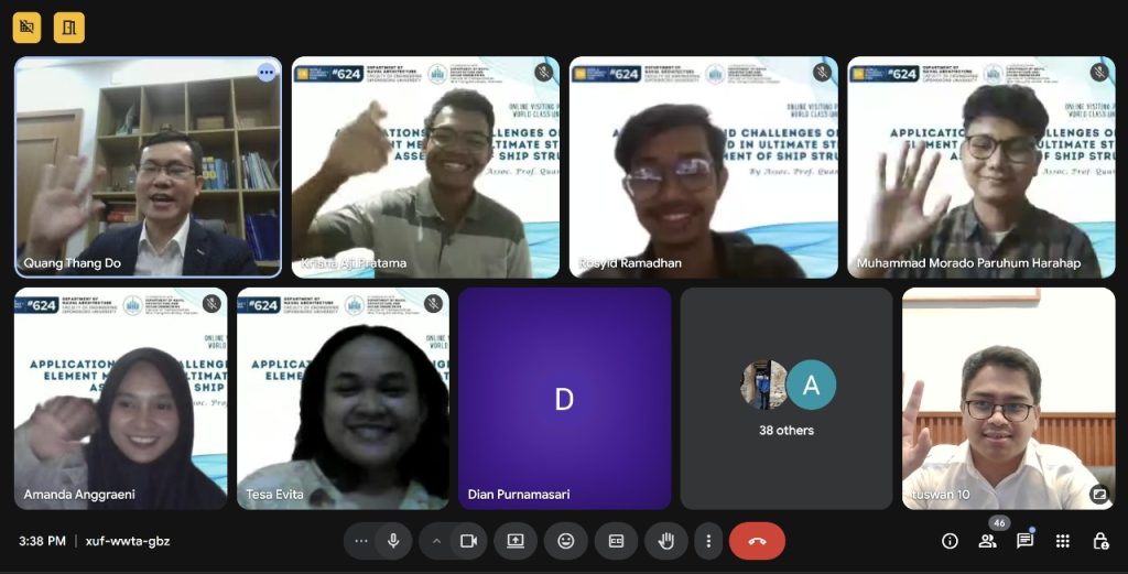 Sebagai bagian dari program World Class University (WCU), Departemen Teknik Perkapalan, Universitas Diponegoro, kembali menyelenggarakan kegiatan Online Visiting Professor dengan menghadirkan narasumber internasional, Assoc. Prof. Quang Thang Do dari Department of Naval Architecture and Ocean Engineering, Nha Trang University, Vietnam.