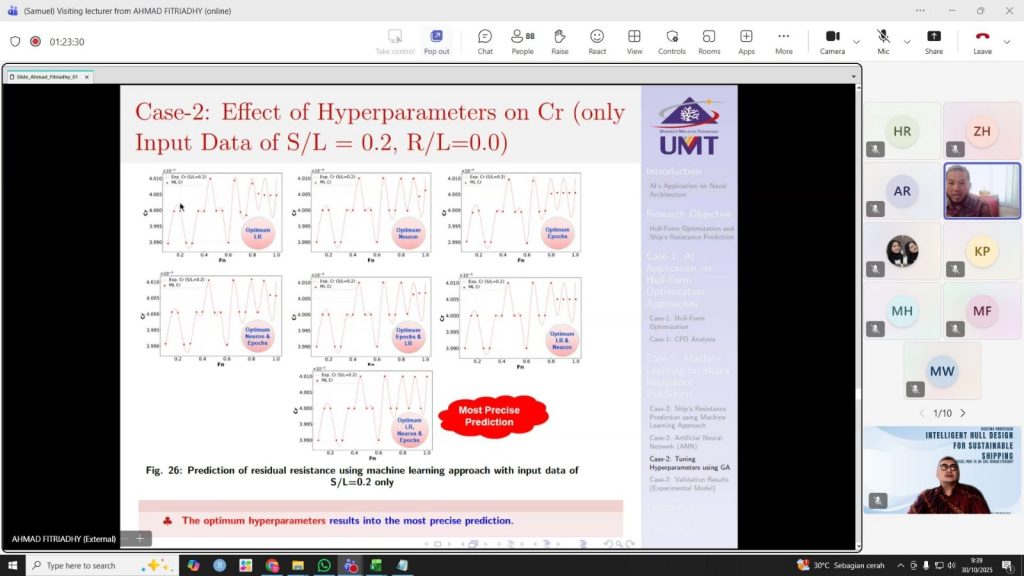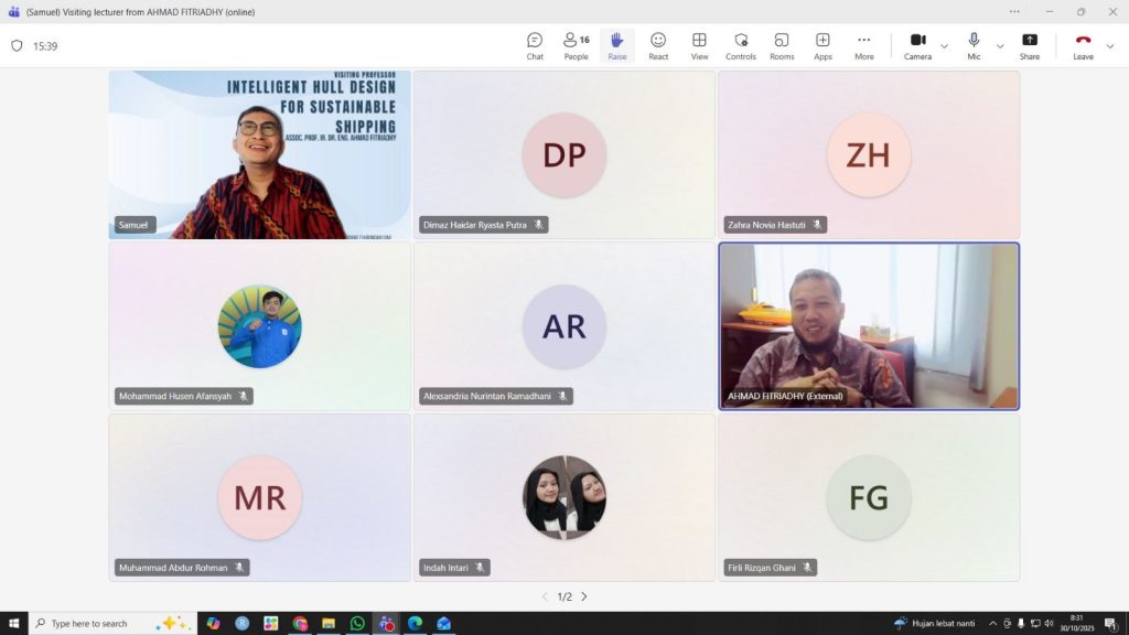 The Department of Naval Architecture, Faculty of Engineering, Universitas Diponegoro (Undip), held a Visiting Professor World Class University (WCU) event with the theme “Intelligent Hull Design for Sustainable Shipping.” The online event, held on October 30, 2025, featured an international expert in the field of naval architecture.