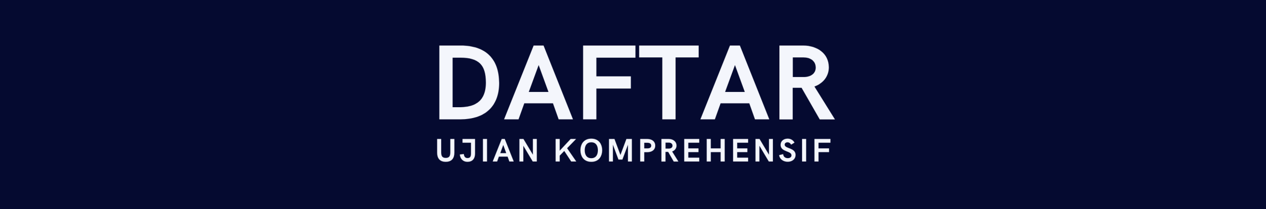 Adalah Ujian yang merepresentasikan tercapainya CPL (Capaian Pembelajaran Lulusan) melalui beberapa pertanyaan 100 soal pilihan ganda. Apabila tidak lulus, maka wajib mengulang. Nilai minimum adalah 60. Klik link dibawah ini untuk mendaftar